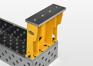 The rail system is installed according to your requirements. Several options are available to you, for example overfloor or underfloor installation. The advantage of underfloor installation is that the entire work area around the rail system is accessible for persons and vehicles. This accessibility makes work easier, reduces the risk of accidents and thereby boosts safety and increases efficiency in your manufacturing process. You have access to the comprehensive selection of DEMMELER accessories to set up your clamping fixtures on the rail system.