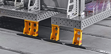 Our flexible clamping system grows with your tasks. The modular structure of the base rail system offers you the greatest possible freedom for the production of bigger than normal components. A grid system of any size adapted to your product portfolio can be installed in your production hall. This provides you with a level installation surface over the entire area, including grid bores. The rail system is installed according to your requirements. Several versions are available to you, for example overfloor or underfloor installation. The advantage of underfloor installation is that the entire work area around the rail system is accessible for persons and vehicles.
